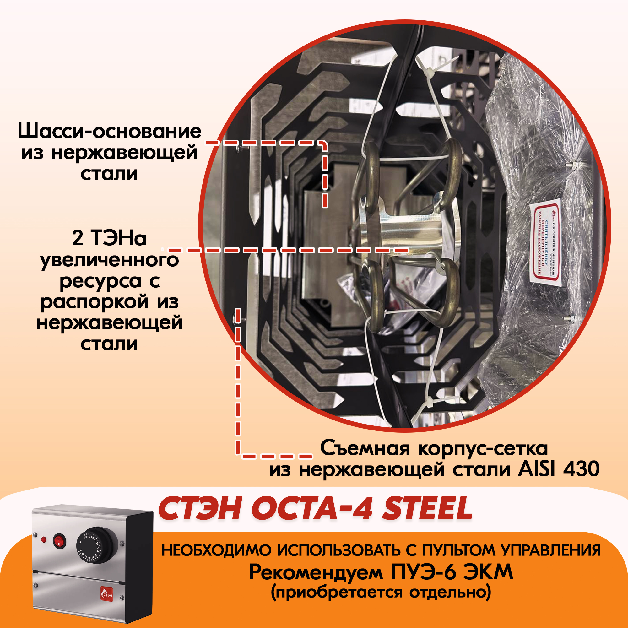 Электрическая каменка СТЭН ЭКМ 4 Octa steel в Санкт-Петербурге | Доставка по России