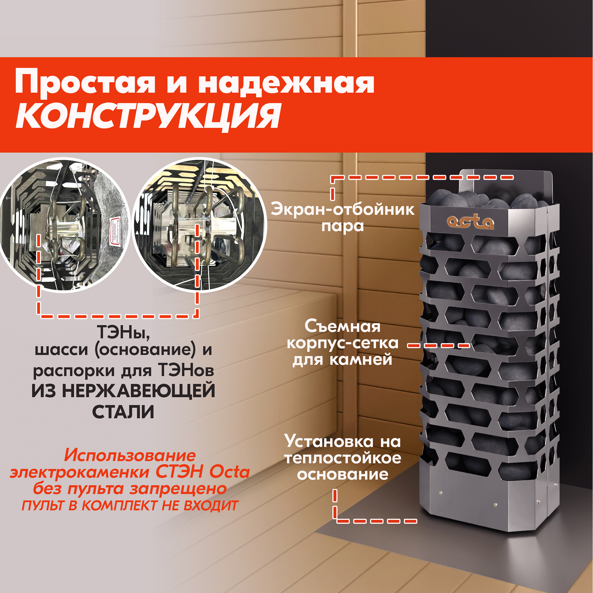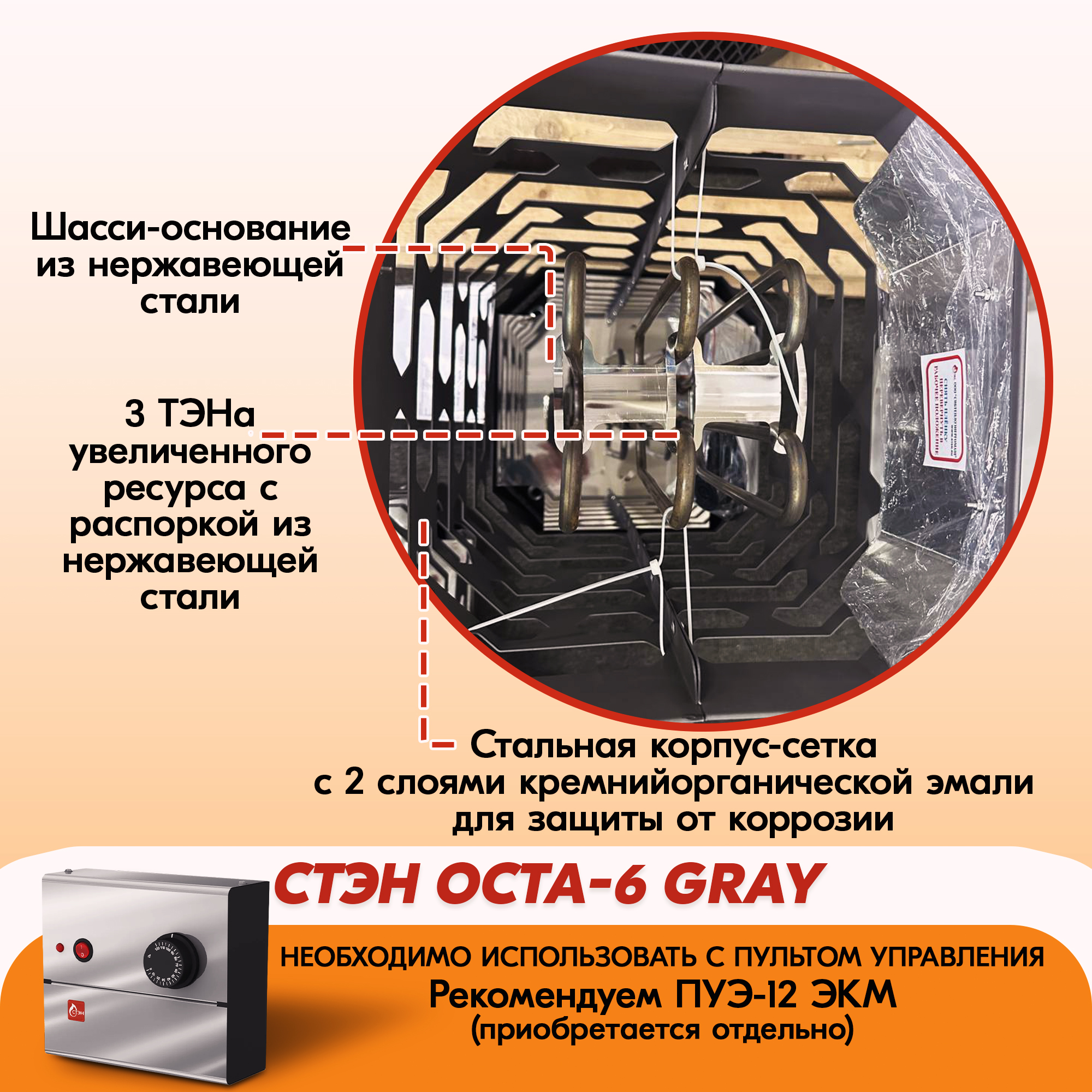 Электрическая каменка СТЭН ЭКМ 6 Octa gray в Санкт-Петербурге | Доставка по России