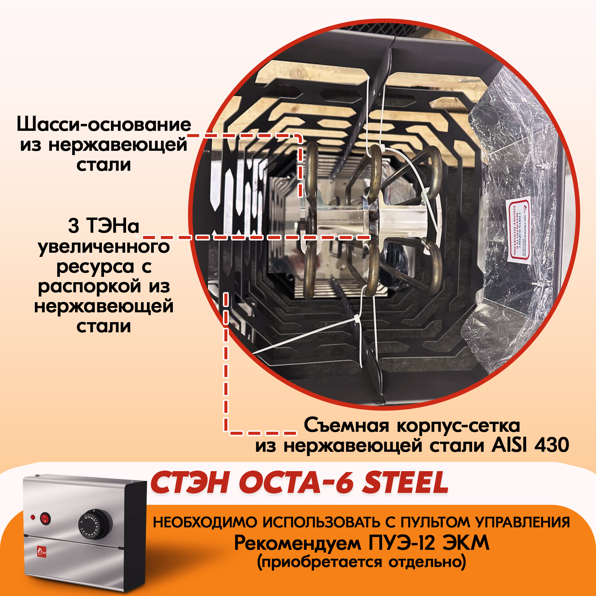 Электрическая каменка СТЭН ЭКМ 6 Octa steel в Санкт-Петербурге | Доставка по России