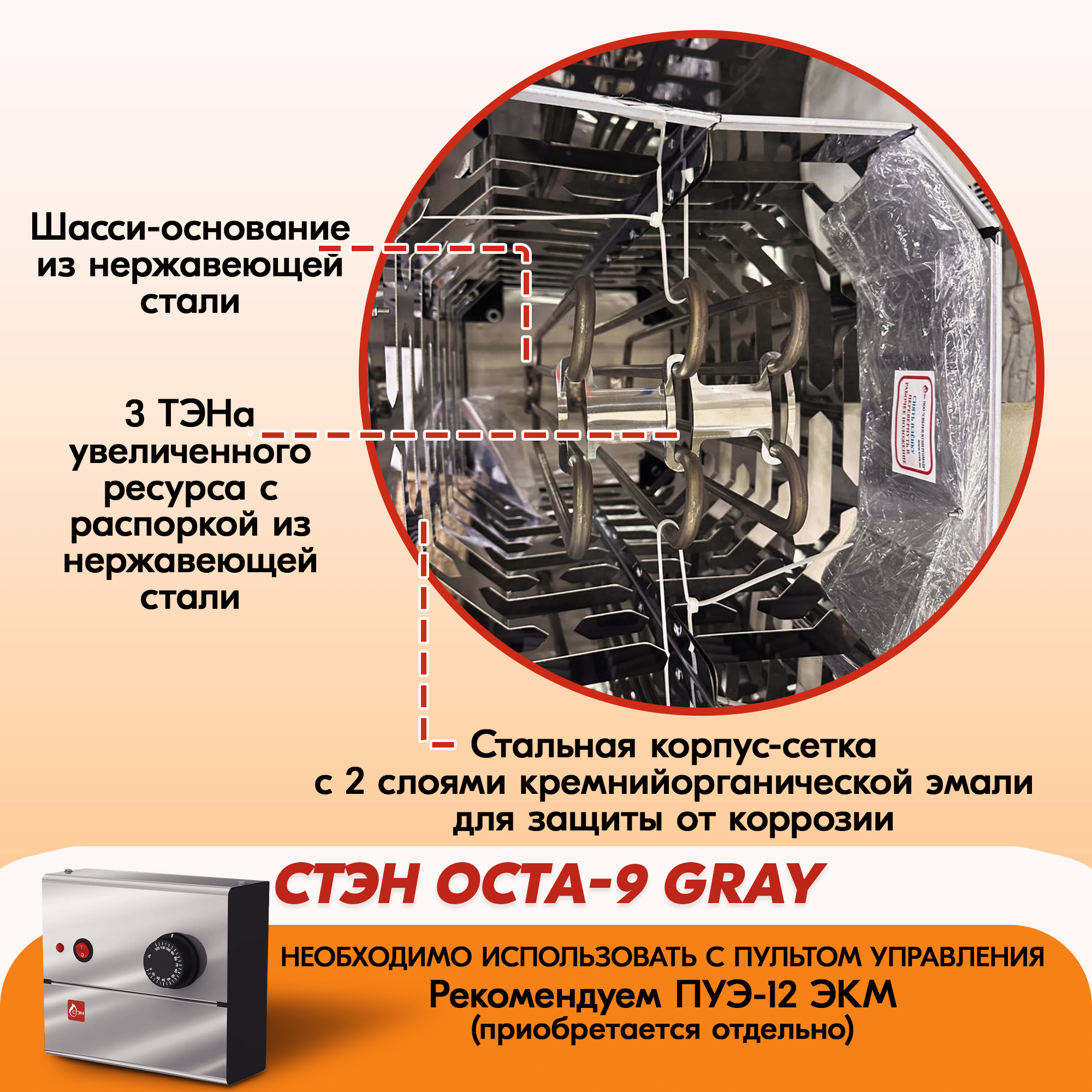 Электрическая каменка СТЭН ЭКМ 9 Octa gray в Санкт-Петербурге | Доставка по России