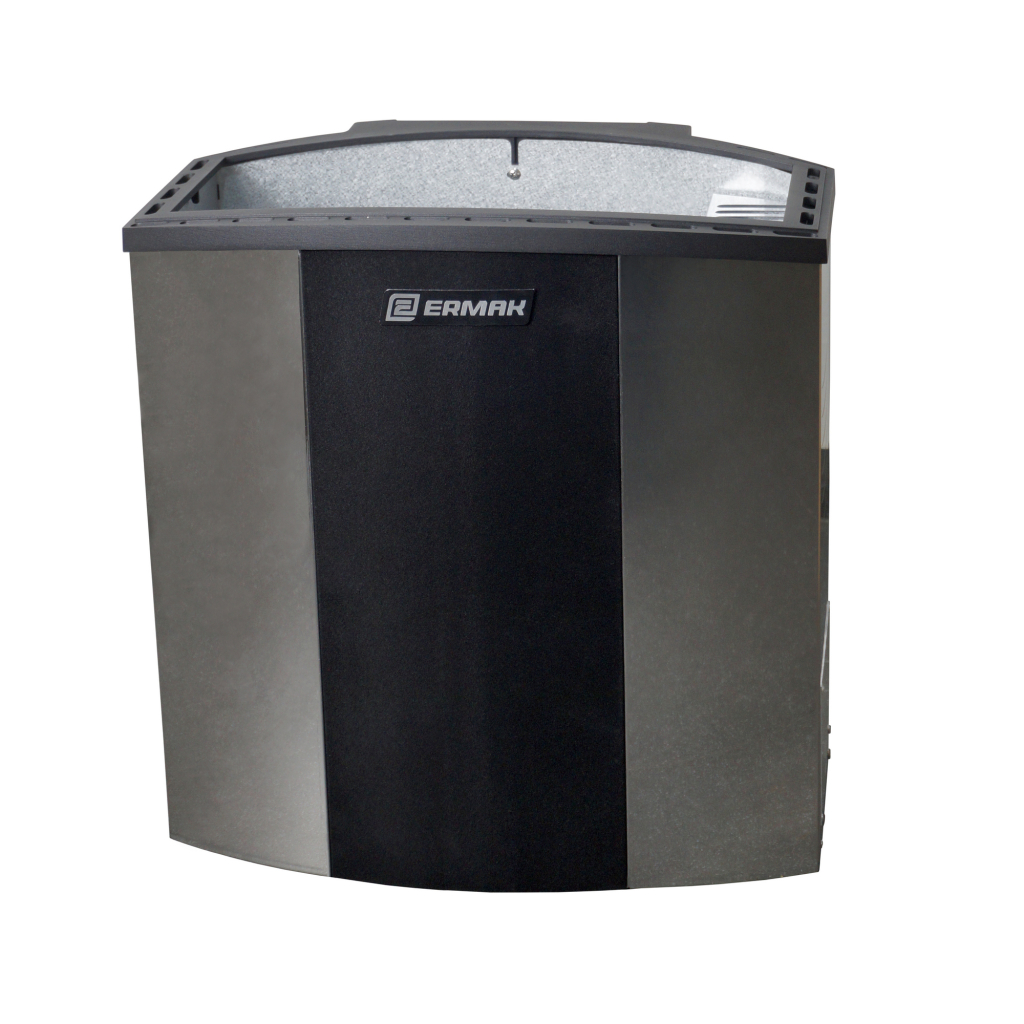 Электрокаменка ERMAK BC-90 BW с выносным пультом управления времени работы и регулировкой температуры (в комплекте). Электрическая печь каменка имеет кожух-конвектор прямоугольной формы из хромированной нержавеющей стали с черной флокированной (бархат) вставкой по центру. Подойдет для бани и сауны с парной объемом 8-14 м3. Использует напряжение в сети — 380 В.