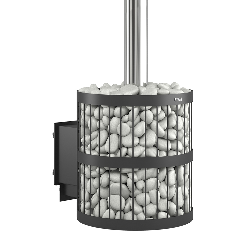 Пространство между печью и сеткой заполняется камнями для бани, которые выполняют роль теплонакопителя, перераспределяют тепло от стенок топки. Воду подают на нагретые камни, с которых полученный пар распространяется по всему объёму парной. Кожух диаметром 560 миллиметров вмещает в себя до 120 килограммов камней крупной и средней фракции.