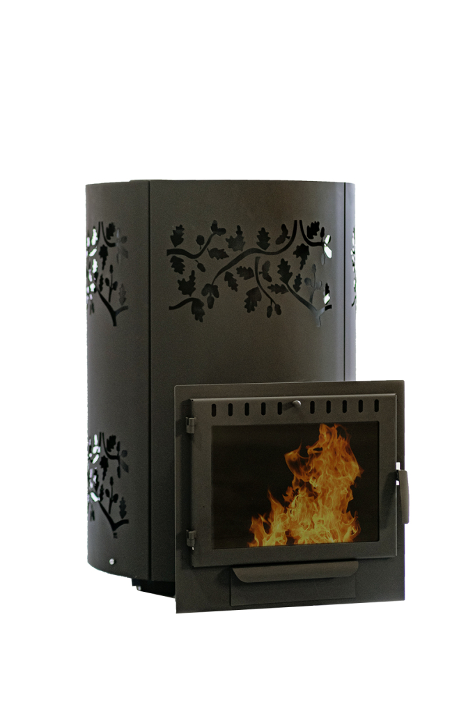 Банная печь «Дубрава» представляет собой стальную конструкцию, выполненную в круглой форме, позволяющая максимально эффективно нагревать парильное и смежные помещения в бане. Отличительной особенностью данной модели является ее уникальная закрытая каменка, которая равномерно нагревается за счет использования винтовой системы дымохода. Внутри каменки нагнетается высокая температура, которая позволяет с высокой скоростью производить нагрев имеющихся камней и удерживать ее на протяжении длительного периода времени. Печь выполнена из стали толщиной 6мм и облицована конвекционным металлическим кожухом, защищающим от инфракрасного излучения.