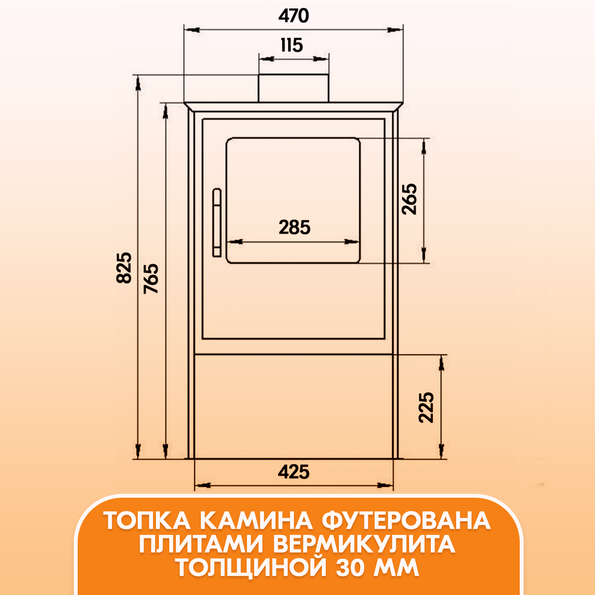 По бокам, сзади и снизу топка отопительной печи проложена вермикулитовыми плитами толщиной 30 мм.