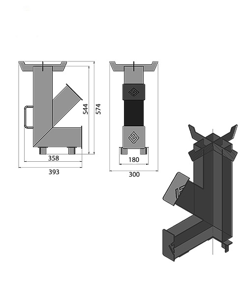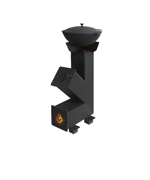 Конструктивно печь представляет из себя F-образную трубу. В верхний горизонтальный тоннель закладываются дрова. Тоннель приварен под углом, это обеспечивает самостоятельное перемещение дров вниз по мере горения (под действием силы тяжести). Зола в такой конструкции скапливается в нижнем горизонтальном тоннеле и не забивает топку, не нарушая при этом тягу и интенстивность горения, это, в свою очередь, ведет к более экономичному использованию дров.