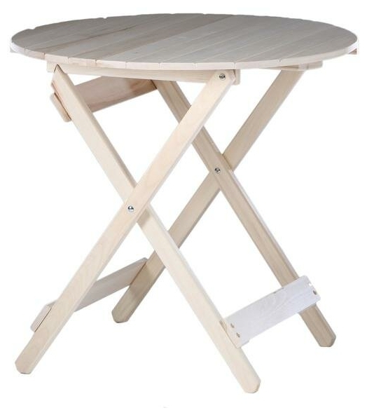 Стол раскладной из липы круглый 900х900х750. Предназначин для использовании в бани, в домах и также на открытом воздухе