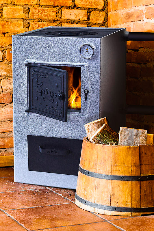 Экономичность: специально разработанная конструкция котла позволяет максимально использовать тепловую энергию при сгорании топлива, при этом стальную плиту можно использовать для приготовления пищи и подогрева воды.