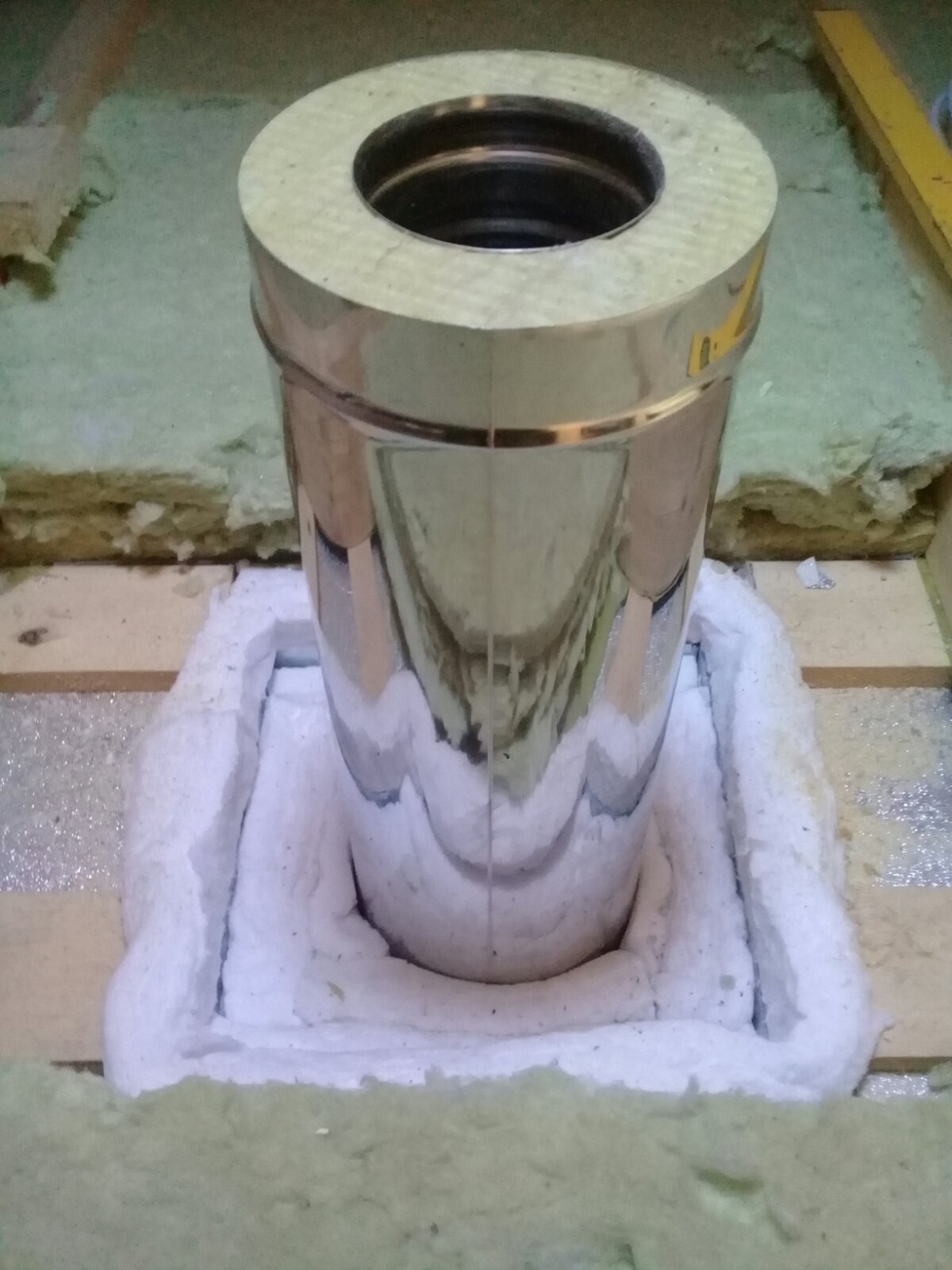 Монтаж печи Атмосфера с установкой дымохода и портала их натуральной каменной плитки со стороны комнаты отдыха