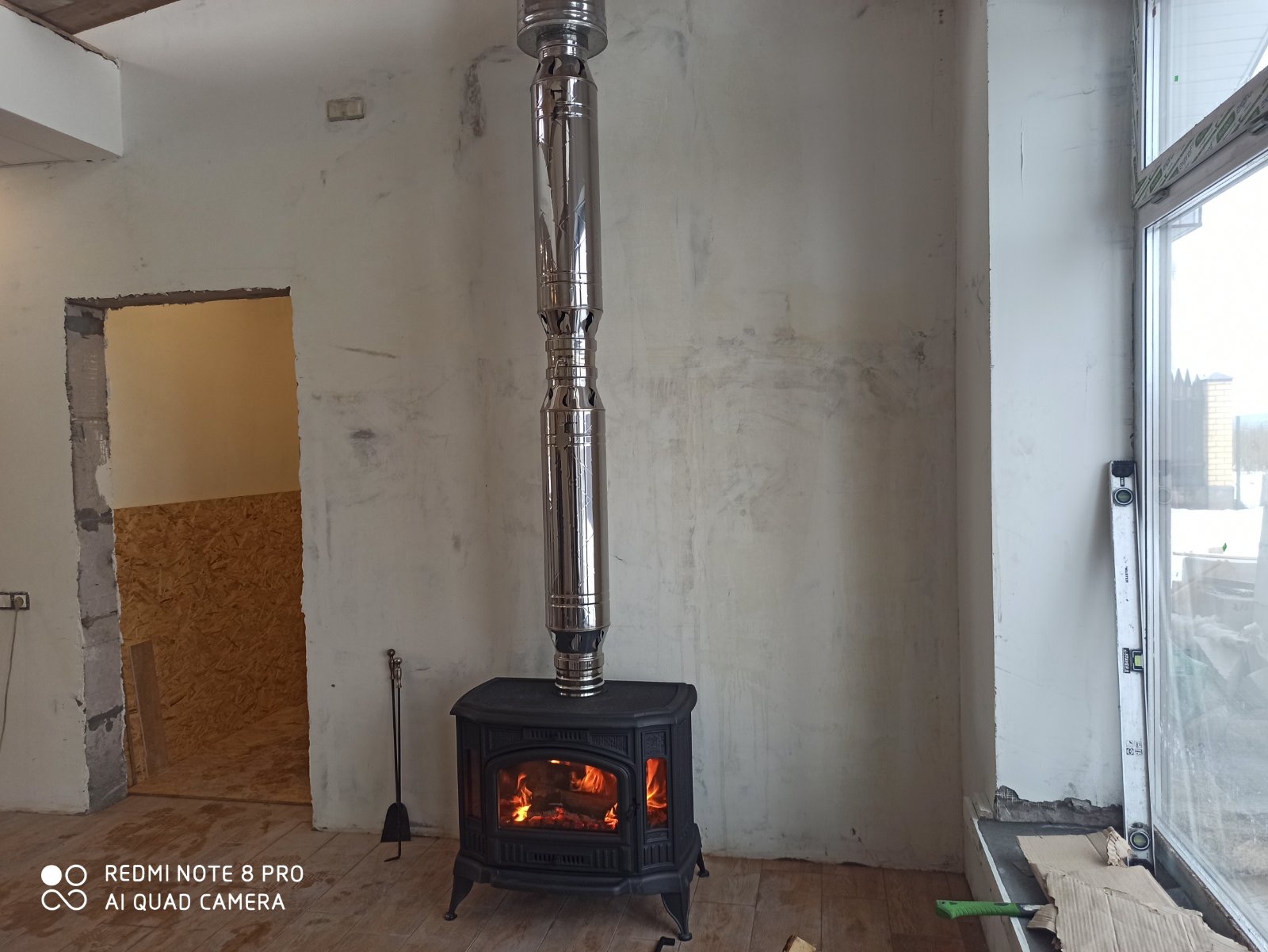 Установка камина KOZA K9 с монтажем дымохода 2,5м.
