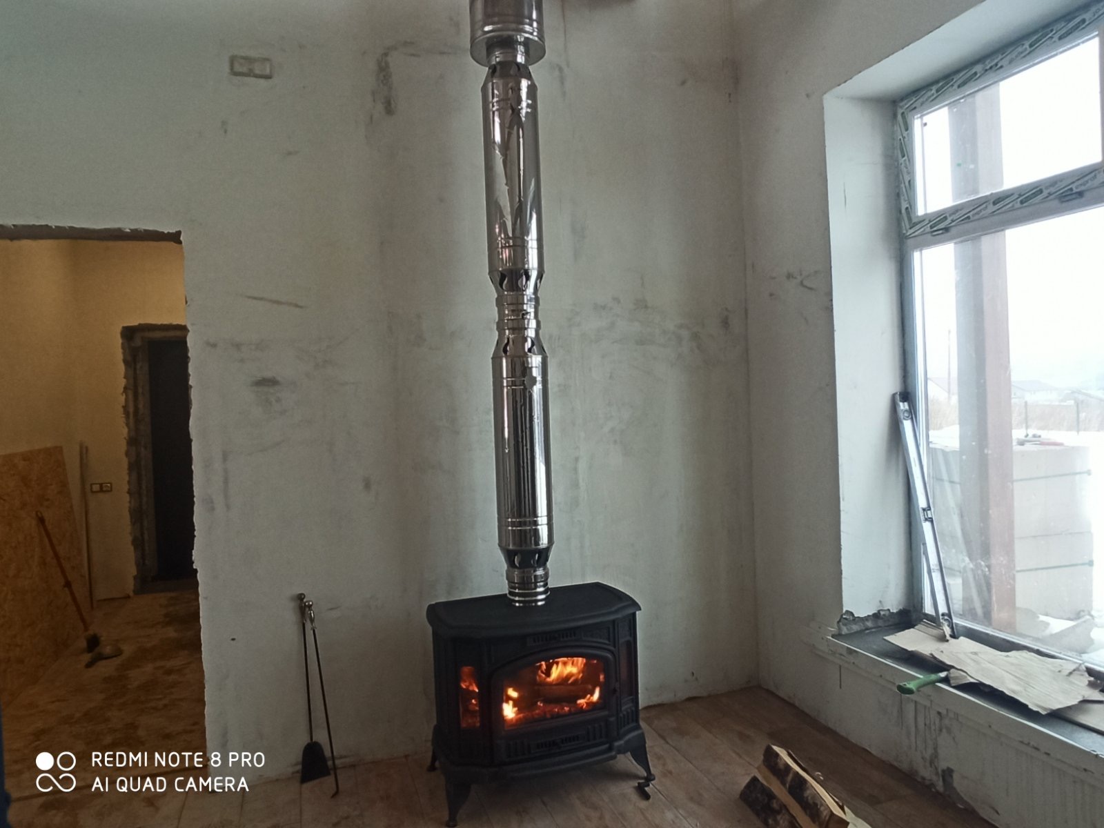 Установка Камина KOZA K9 и комплект дымохода 2,5м